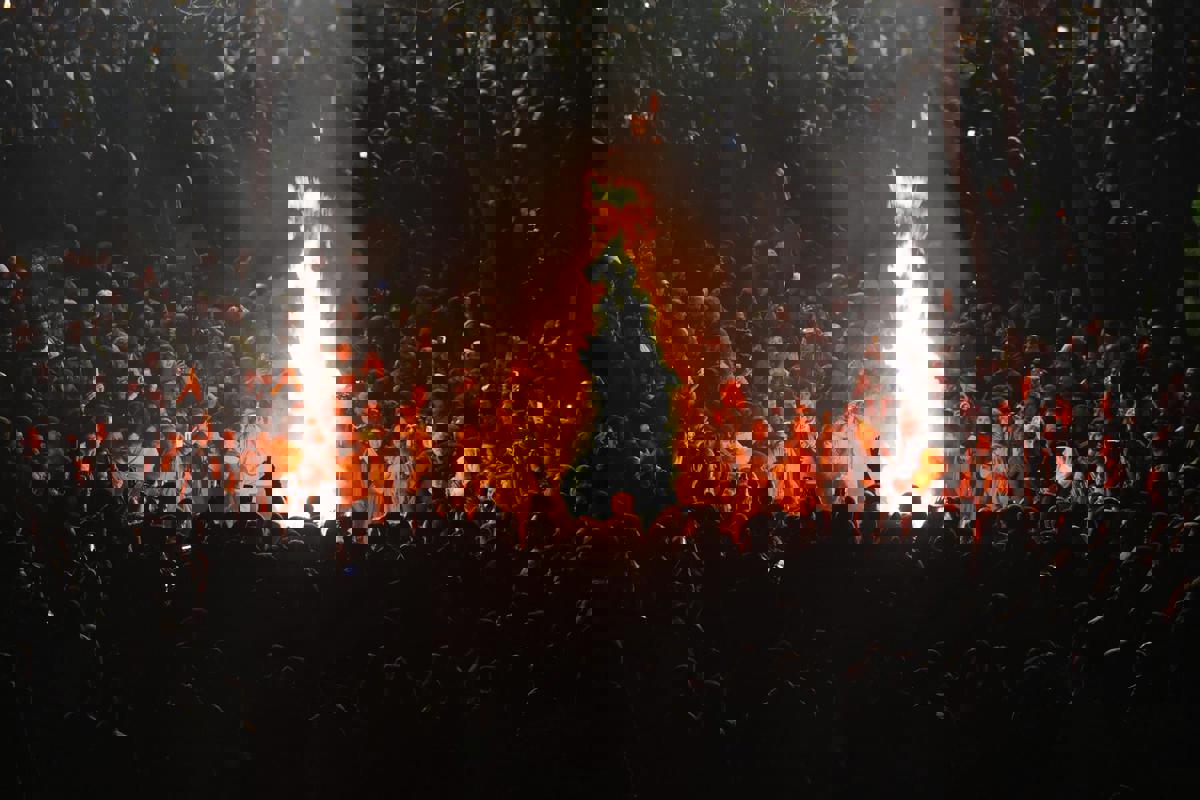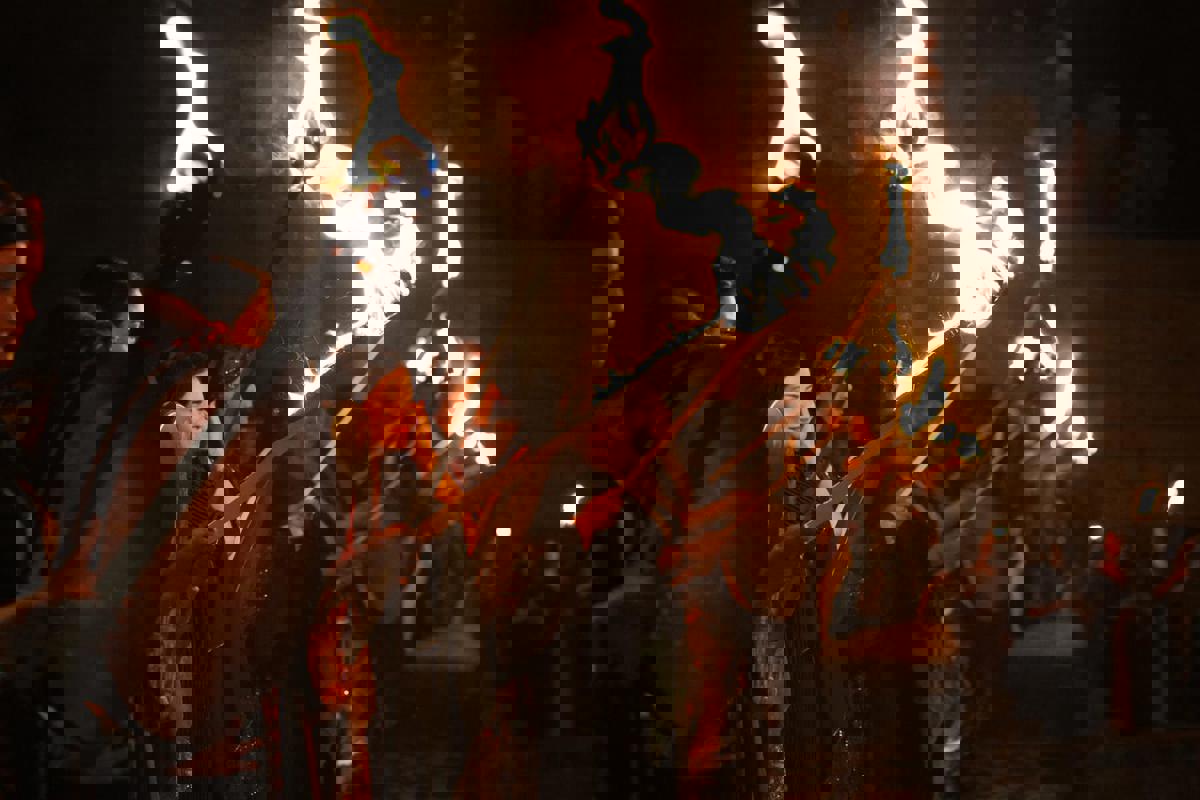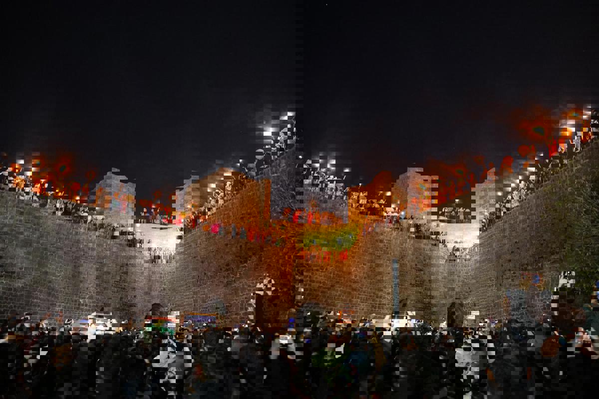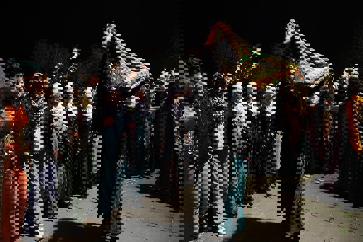 Li gorî nûçeya Ajansa Welat Ciwanan Çarxa Şoreşê xwendin. Jin bi meşelayan derketin ser sûran û dîmenên reng bi reng derketin holê. Piştre bi stranên Kurdî ve govend gerandin.
