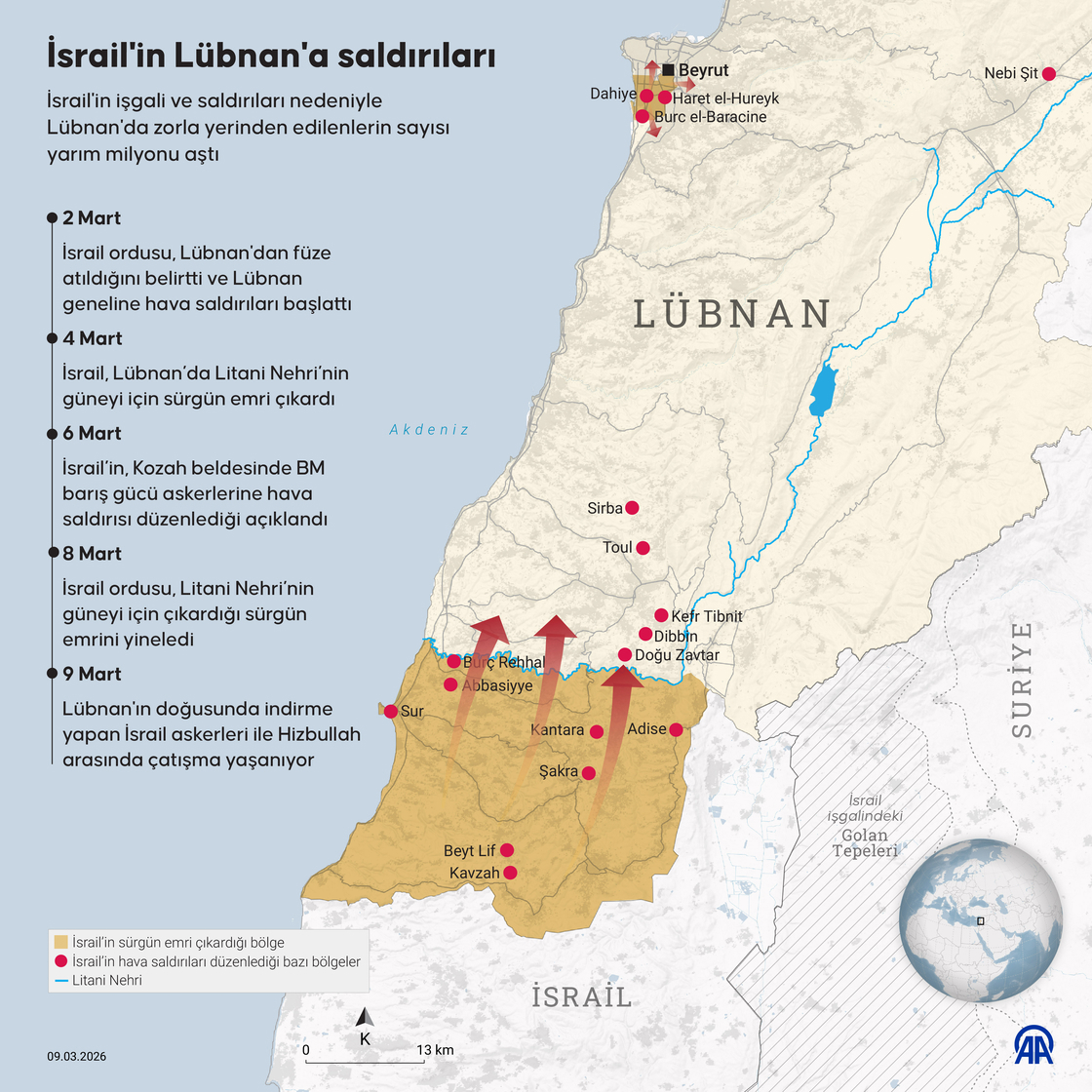 İsrail ordusunun 2 Mart’ta Lübnan’a yönelik başlattığı saldırılar, 11. gününde (12 Mart) sürüyor.