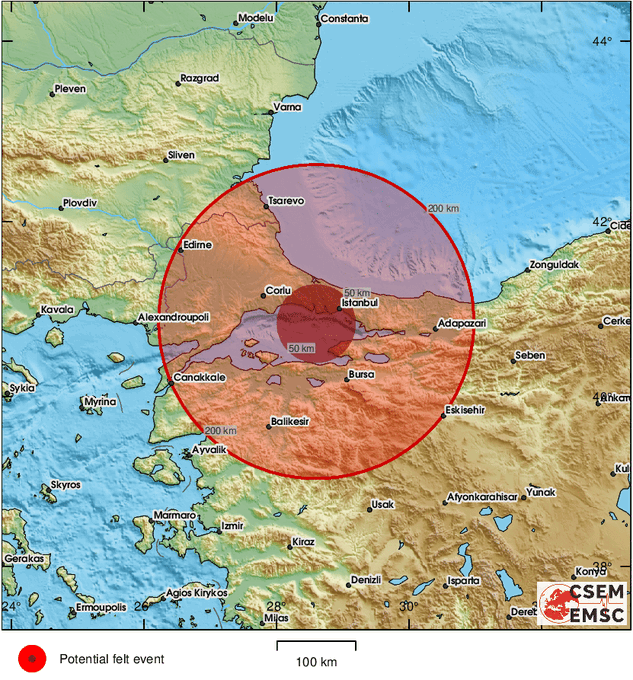 Gerçek zamanlı deprem bilgisi sağlayan bağımsız bilimsel kuruluş EMSC’ye göre, deprem Marmaraereğlisi (Tekirdağ) merkezine yaklaşık 20 kilometre uzaklıkta hissedildi.