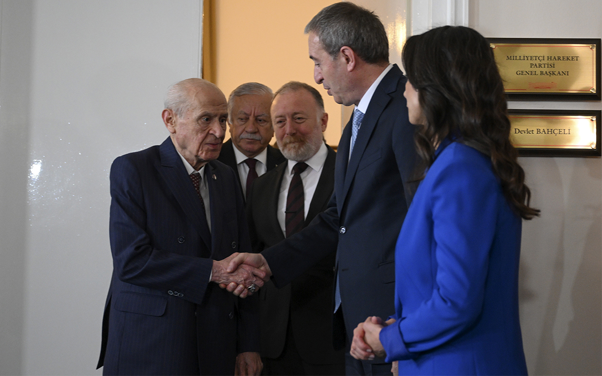 DEM Parti Eş Genel Başkanları Tuncer Bakırhan ve Tülay Hatimoğulları ile beraberindeki heyet, MHP Genel Başkanı Devlet Bahçeli’yle görüştü.