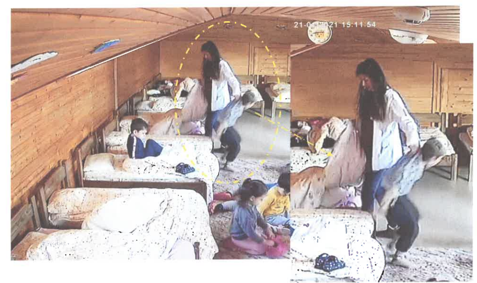 Kamera kayıtlarına ilişkin hazırlanan bilirkişi raporunda ise şüpheli E.A.’nın, uyumayan çocuğun üstünü tamamen örttüğü, yatakta oturan çocuğun alnından tutarak geriye doğru çekerek yatağa yatırdığı, çocukların sırtından tutarak çektiği ve ittiği tespit edildi.