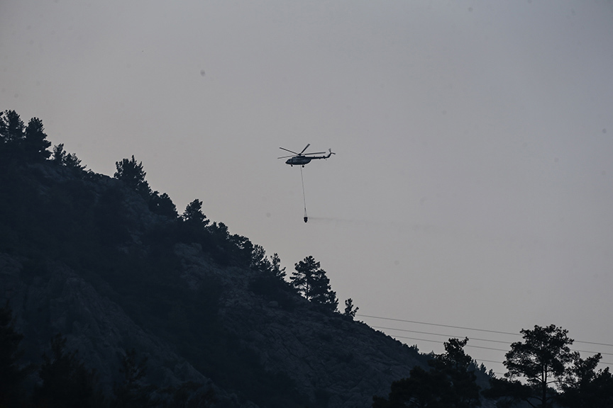 Anamur’un Korucuk Mahallesi’nde dün çıkan orman yangınına da gece boyunca müdahale edildi. Sabahın ilk ışıklarıyla birlikte helikopterler yeniden havadan söndürme çalışmalarına başladı. Yangının yayılma riski nedeniyle Ovabaşı Mahallesi tedbiren boşaltıldı.