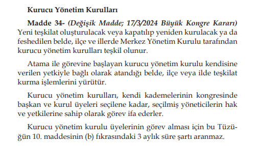 MHP'nin tüzüğünde yer alan 34'üncü maddenin içeriği ise şöyle: