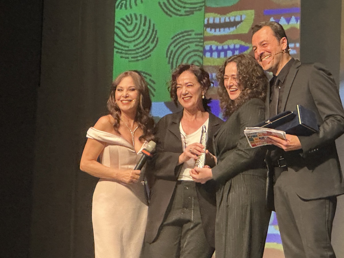 Esra Bilgiç, törende “çok sevdiğim birine ödül vereceğim” diye anlattığı kadın da oyuncu Hülya Darcan’dı. Darcan, Bilgiç’ten ödülünü aldıktan sonra şöyle dedi:
