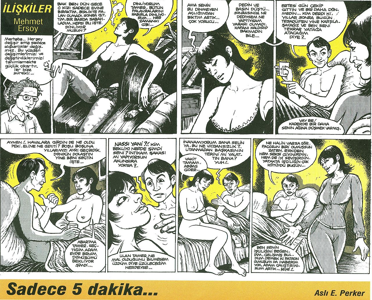 Muzır Kurulu'nca gönderilen tebligatta, Mehmet Ersoy tarafından çizilen "İlişkiler" konulu karikatür, "evlilik dışı ilişkiye özendirmek"le suçlanıyor. Karar şöyle devam ediyor: "İnceleme bölümünde de belirtildiği gibi derginin 15'inci sayfasında; "bencil" yazısının yanında kadının cinsel organının göründüğü, 44'üncü sayfada kadın erkek ikili tamamen çıplak değişik pozisyonda cinsi münasebetin ortaya konduğu çizimlerde görsel cazibeyi öne çıkararak, cinsel kışkırtıcılığı artırıcı karikatürize resimlerin bulunduğu, konuşma yazılarında da desteklendiği çizgi resim ve fotoroman türündeki çizim ve anlatımların çocuklarımız üzerinde daha etkili olduğu, bu tür yayınlarda dergide olduğu gibi evlilik dışı ilişkileri özendirir biçimde karikatürize çizimlere ve fotoromanlara yer verildiği, cinsel görselliğin öne çıkarılarak kadının cinsel meta olarak algılanmasına yol açacağı kuşkusuzdur. Toplumlar, varlıklarını koruyabilmek ve toplum düzenini sağlayabilmek amacıyla sosyal normları oluşturmuşlardır. Basın-yayın, araç ve organları bu normlara bizzat uymak zorundadır."