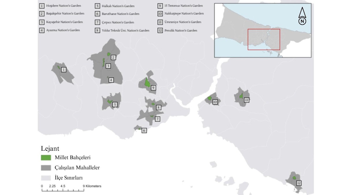 As part of the study, 44 neighborhoods within a 500-meter radius of the 12 Nation’s Gardens completed in İstanbul between 2017 and 2021 were analyzed. Twenty-eight neighborhoods, where the elderly population and low education levels were prevalent and the average housing prices were below the city average, were defined as neighborhoods “at risk of green gentrification.”