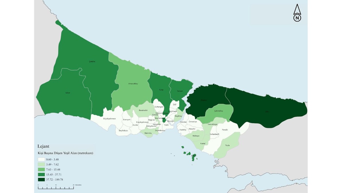İstanbul lags far behind other global metropolises in terms of green space per capita. According to regulations, this amount should be at least 10 square meters in İstanbul. The World Health Organization considers nine square meters of green space per person within a five-minute walking distance to be an indicator of health. However, in İstanbul, the amount of green space per capita is only 7.2 square meters. In 22 districts—including Beyoğlu, Kadıköy, Üsküdar, and Şişli—this amount does not even exceed 3.5 square meters.