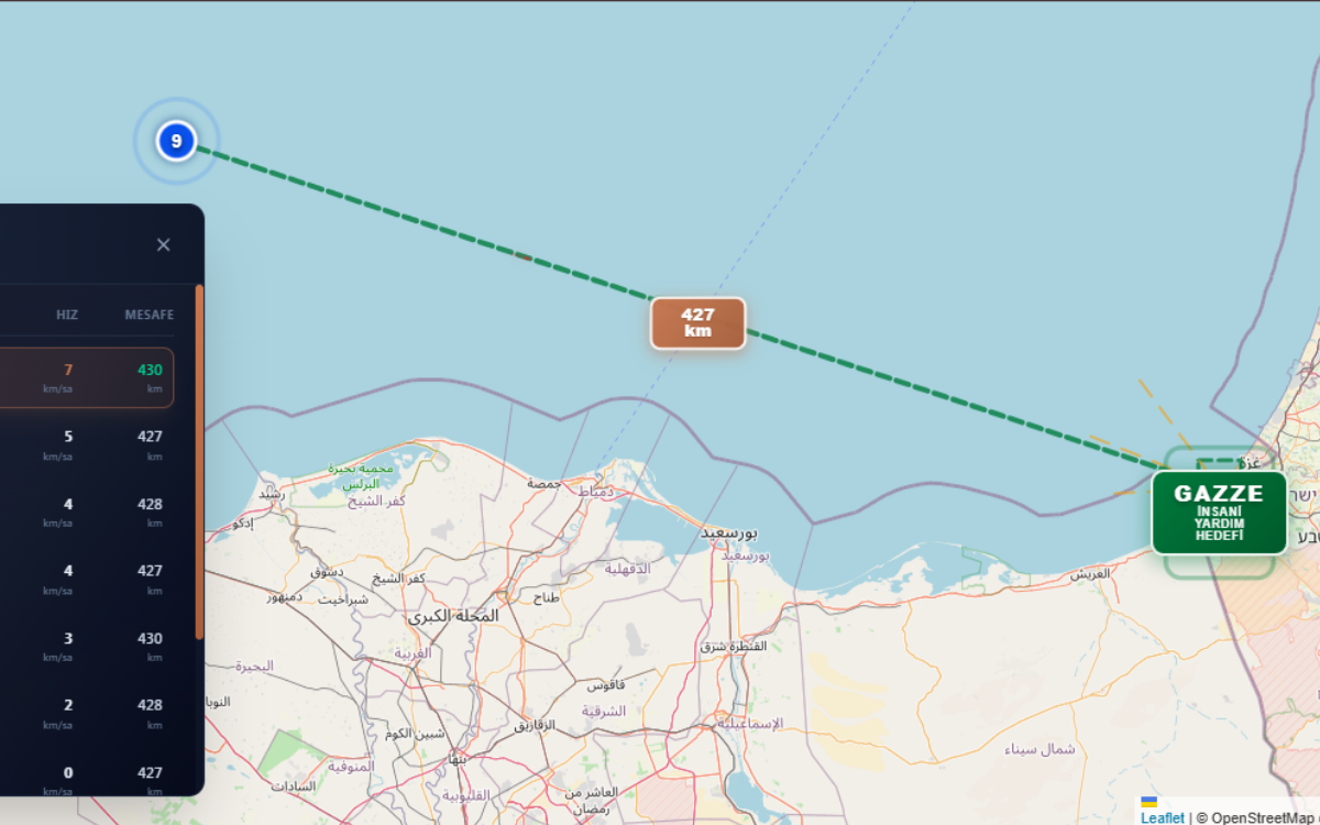 FFC'nin basın grubundan yapılan bilgilendirmeye göre filo, Gazze'ye yaklaşık 200 deniz mili (427 kilometre) uzaklıkta bulunuyor. Uluslararası sularda bulunan filonun, yakında İsrail ordusunun müdahalesi açısından "orta riskli" olarak nitelenen bir alana girmesi öngörülüyor.