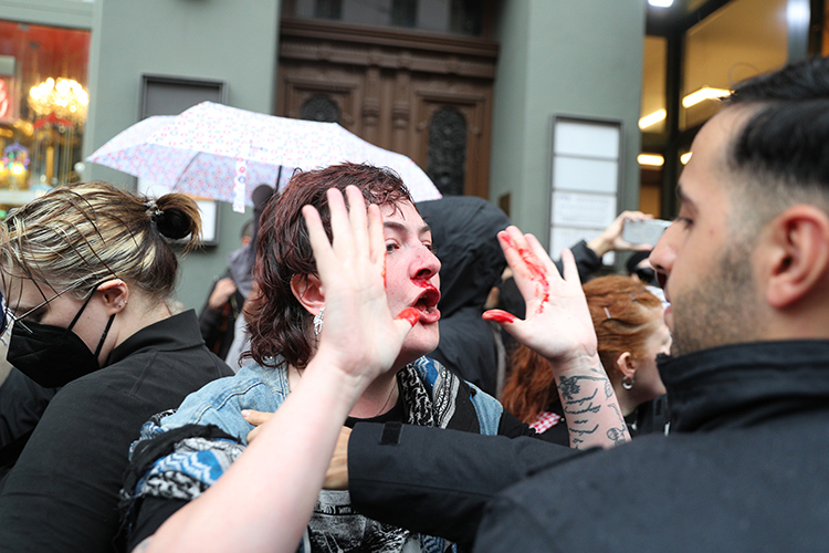 Hackescher Markt bölgesinde bir araya gelen yaklaşık 200 kişi, Gazze’deki İsrail saldırılarını protesto etmek, gazetecilerin öldürülmesine ve bölgede yaşanan açlık krizine dikkat çekmek için yürüyüş düzenledi. Üzerinde “Gazze'deki soykırımı durdurun”, “Gıdaları Gazze'ye bırakın, hemen şimdi” ve “Gazze’de açlığı sonlandırın” yazılı dövizler taşıyan göstericiler, “Terörist İsrail”, “Çocuk katili İsrail” ve “Gazze’ye özgürlük” sloganları attı.