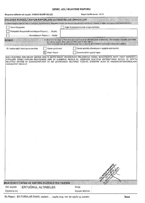 Hasan Basri Keleş daha sonra hastaneden darp raporu aldı ve AKM önündeki tüm polislerden şikayetçi olacağını söyledi. (HK)