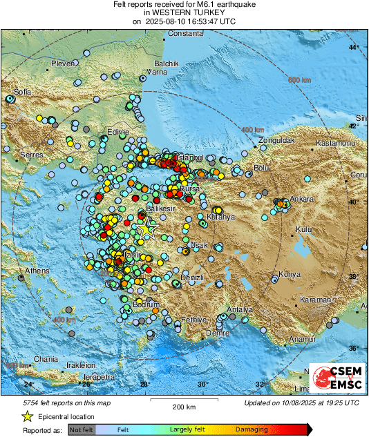 The quake, measuring 6.1 magnitude, occurred at 7.53 pm local time (GMT+3) local time with its epicenter in the Sındırgı district, according to the Disaster and Emergency Management Authority (AFAD). The tremor was felt across nearby provinces, including İstanbul, İzmir, Manisa and Bursa.