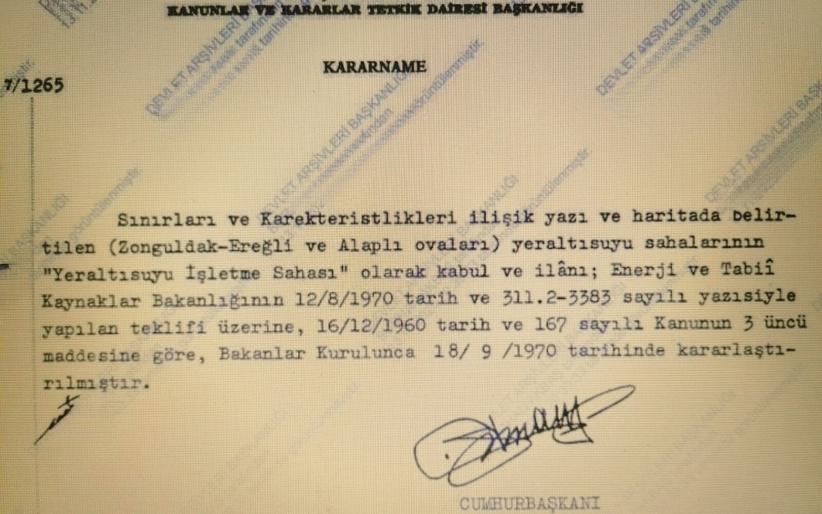 “Proje alanı Bakanlar Kurulunun 18 Temmuz 1970 tarihli kararı ile burası ‘içme suyu alanı’ ilân edilmiştir. Dönemin Başbakanı Süleyman Demirel ve Cumhurbaşkanı Cevdet Sunay’ın imzası ile alınan karar hâlâ yürürlüktedir. 2019’da DSİ burayla alakalı sel ve taşkın bölgesi olduğunu ÇED dosyasına yazı olarak gönderdi. Önceki Zonguldak Valisi Mustafa Tutulmaz, bölgeyi bizzat gezerek ‘Burası sel ve taşkın alanıdır, burada yapılaşma olmaz,’ dedi. Burası her şiddetli yağmurda sel altında kalıyor.
