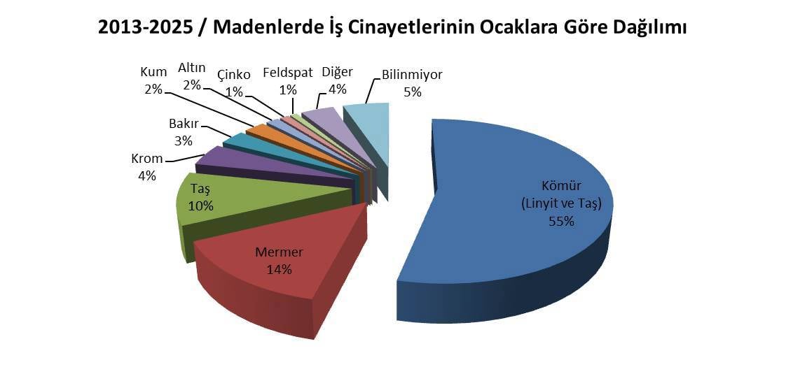 Rapor, 1267 ölümün 682’sinin linyit ve taş kömürü üretiminde gerçekleştiğini; mermerde 178, taş ocaklarında 132 ölüm olduğunu kaydediyor. Bu üç alan, toplamın “beşte dördüne yakın” bölümünü oluşturuyor.