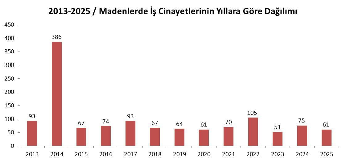 Rapor, maden işçiliğinin tarihsel olarak Zonguldak merkezli yapısına, 1980 sonrası güvencesizleştirmeye ve sendikal harekete dönük baskılara işaret ediyor; Kozlu, Armutçuk, Yeni Çeltek ve Sorgun’daki toplu ölümleri hatırlatıyor. AKP döneminde ise Soma, Ermenek, Amasra, İliç gibi “toplu iş cinayetleri”nin yakın geçmişe damga vurduğunu belirtiyor.