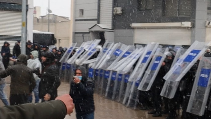 Bir süre yürüyüş yapan kabalığın önü polis barikatıyla kesildi. DEM Parti yöneticileri ile polis yetkilileri arasında yürüyüşle ilgili müzakere yapıldı.