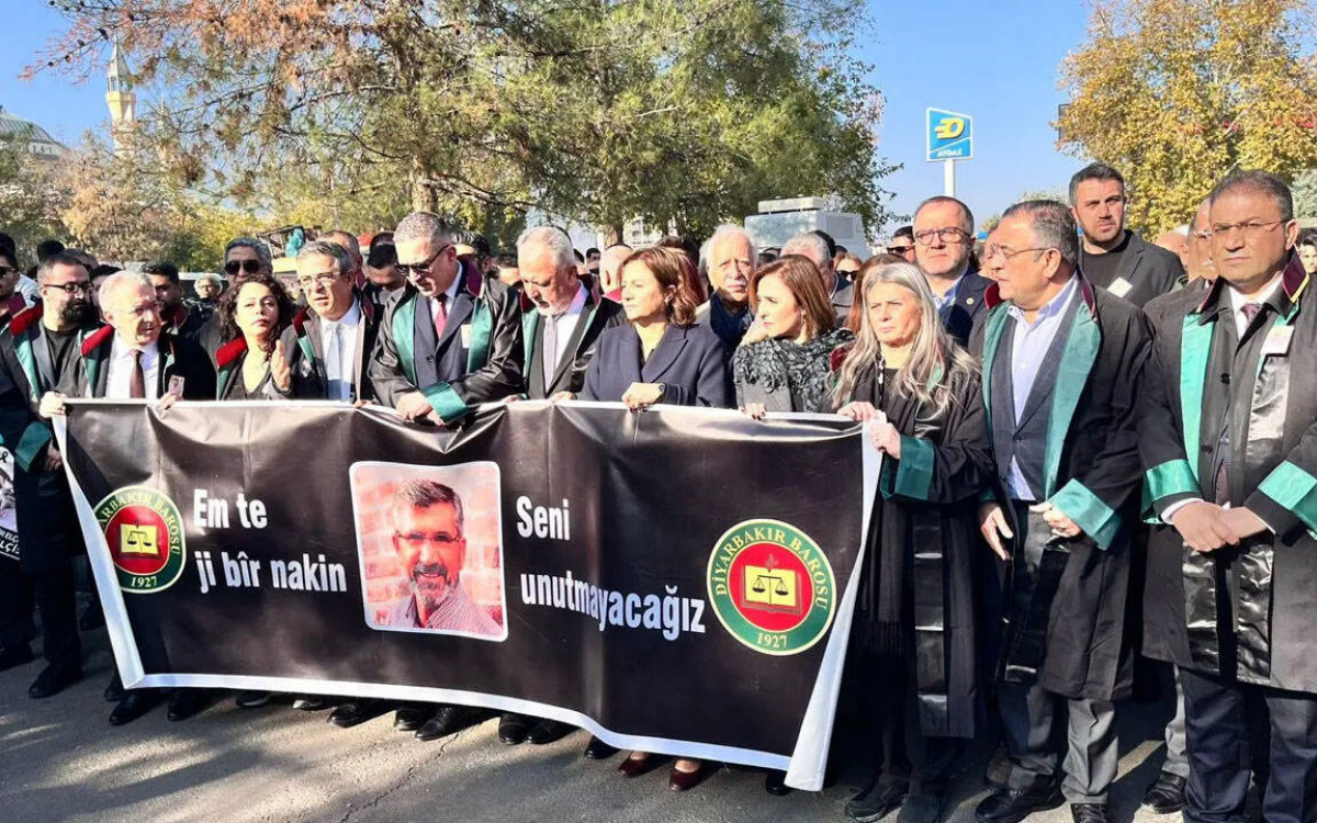 Diyarbakır Adliyesi önünde bir araya gelen çok sayıda kişi, Elçi'nin öldürüldüğü Dört Ayaklı Minare önüne kadar yürüyüş düzenledi.