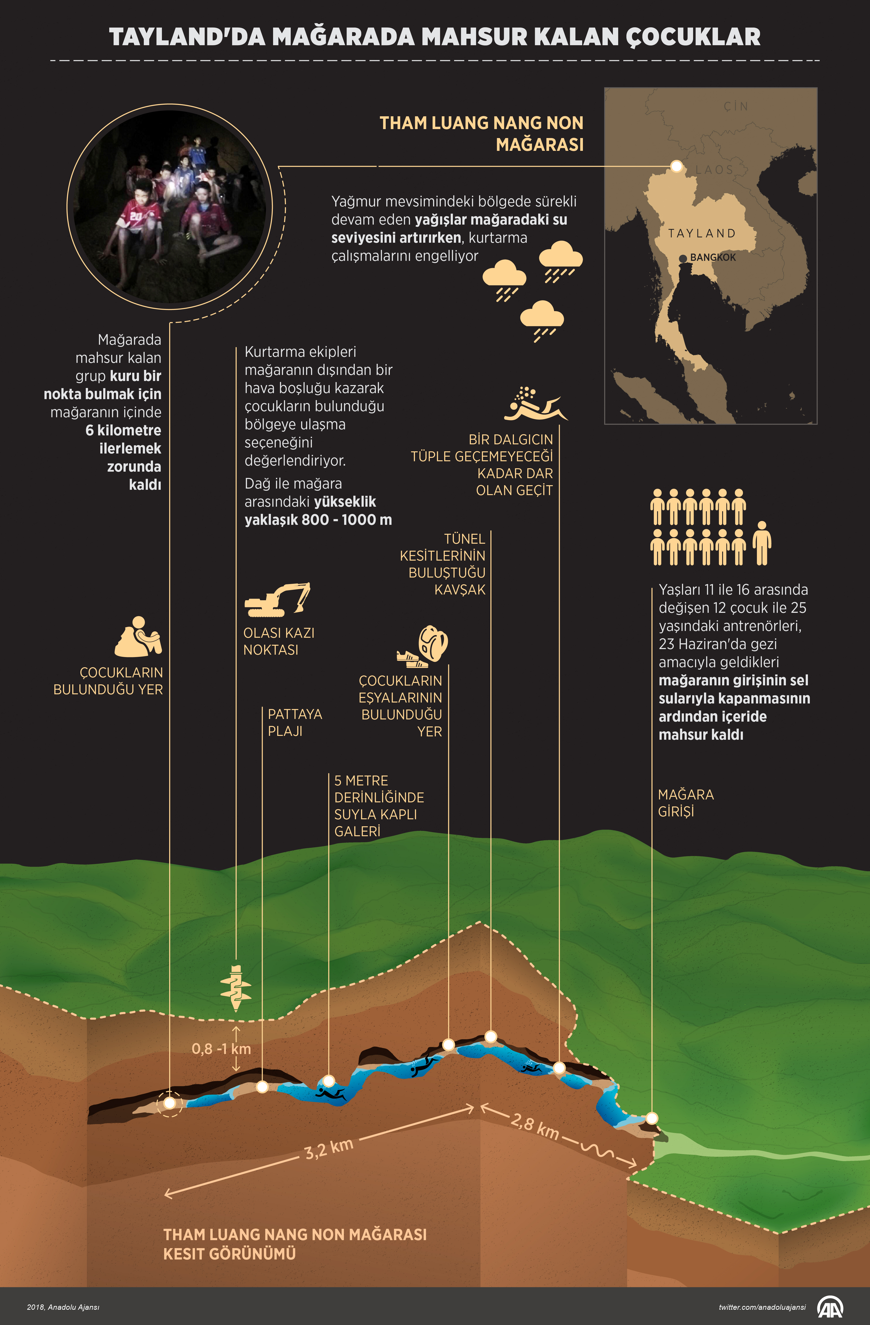 23 Haziran'da kaybolan çocukları bulmak 9 gün sonra mümkün olmuştu. Çocuklar mağara girişinin 4 kilometre uzağında bulunmuştu.