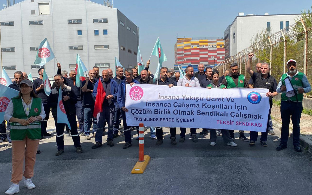 İstanbul Tuzla Serbest Bölgesi’nde faaliyet gösteren Hollanda merkezli TKIS Blinds perde fabrikasında, Türk-İş’e bağlı Türkiye Tekstil, Örme ve Giyim Sanayi İşçileri Sendikası’na (TEKSİF) üye oldukları için işten atılan 10 işçi, işe iade ve sendikal hakları için 218 gündür direniyor.