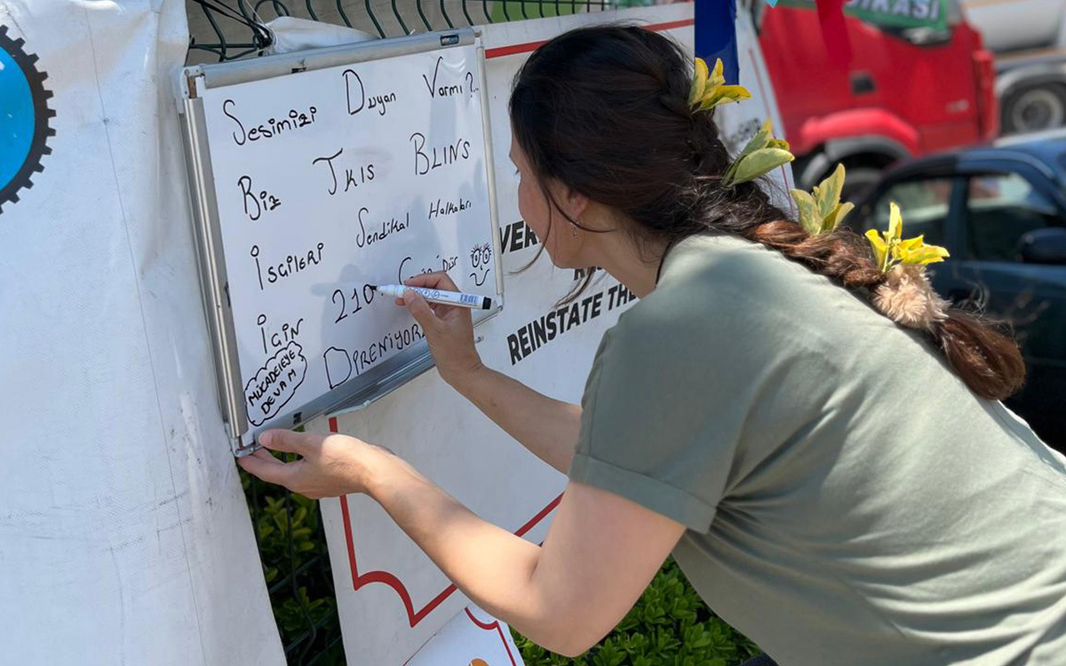 “Fabrika müdürü her şeyi ‘hukuka uygun’ gösteriyordu. Ama biz hukukun gerçekten işlemediğini gördük. Açtığımız davalar sürekli ertelendi. Ana akım medyadan kimse sesimizi duymadı. 218 gündür Tuzla Serbest Bölge önünde direniyoruz, bu sürede bir kışı da çadırda geçirdik.”