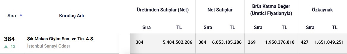 Son yayımlanan İstanbul Sanayi Odası (İSO) Türkiye’nin 500 Büyük Sanayi Kuruluşu listesinde 384. sırada yer alan Şık Makas, Türkiye genelinde 4 bin 710 çalışanıyla farklı bölgelerde tekstil fabrikaları işletiyor. (TY)