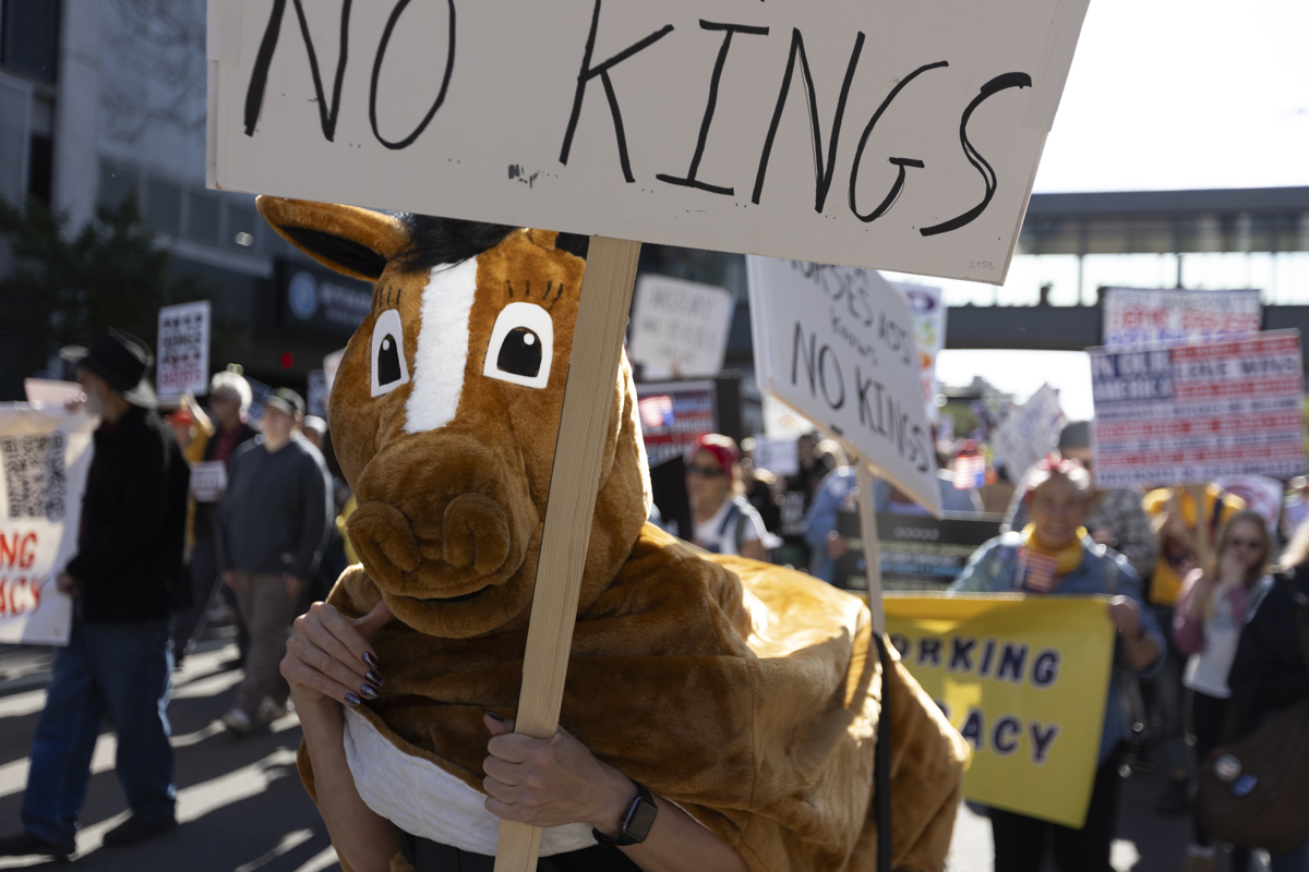 ABD genelinde düzenlenen “Krallara Hayır” protestolarında yurttaşlar, demokrasiye, insan haklarına, ifade özgürlüğüne ve çevreye yönelik tehditlere dikkat çekti.