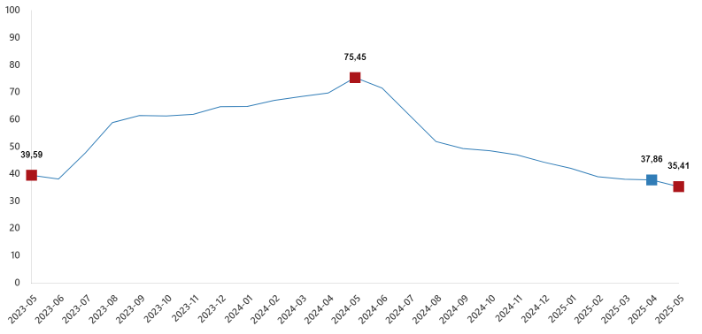 Türkiye İstatistik Kurumu’nun açıkladığı verilere göre Mayıs’ta aylık enflasyon yüzde 1,53, yıllık enflasyon da yüzde 35,41 oldu.