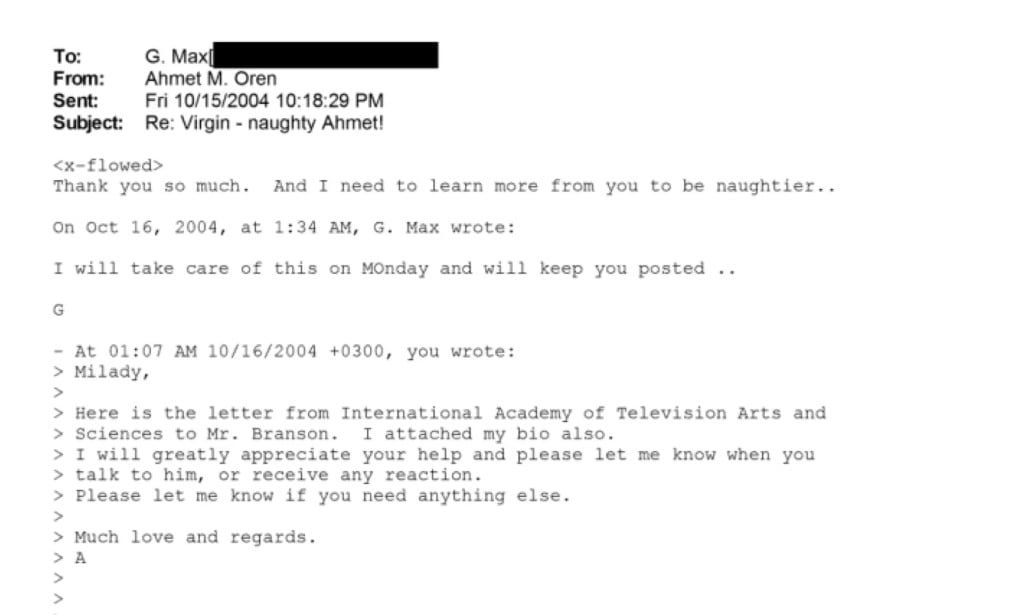 The message exchange was part of a emails in which Ören appeared to be seeking a professional introduction to British businessperson Richard Branson.
