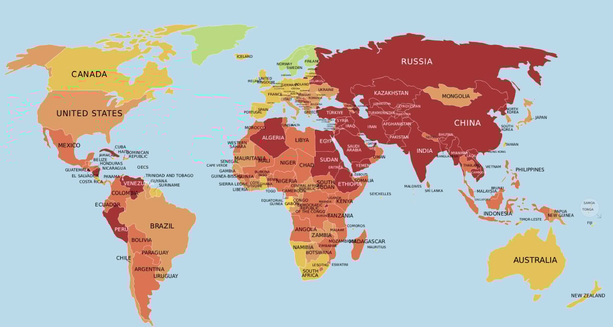 - Dünyadaki tüm ülkelerin ortalama puanı hiç bu kadar düşmemişti. Dünya ülkelerinin yarısından fazlası (yüzde 52,2), endeksin 25 yıllık tarihinde ilk kez “zor” veya “ciddi” bir durumda bulunuyor.