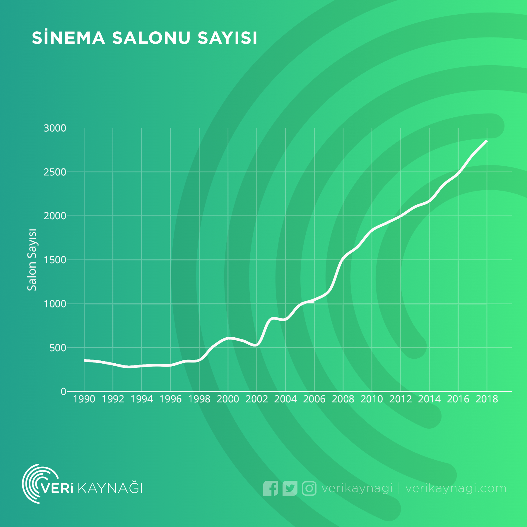 2004’ten beri artmakta olan sinema salonu sayısı 2018’de 2858'e ulaştı.