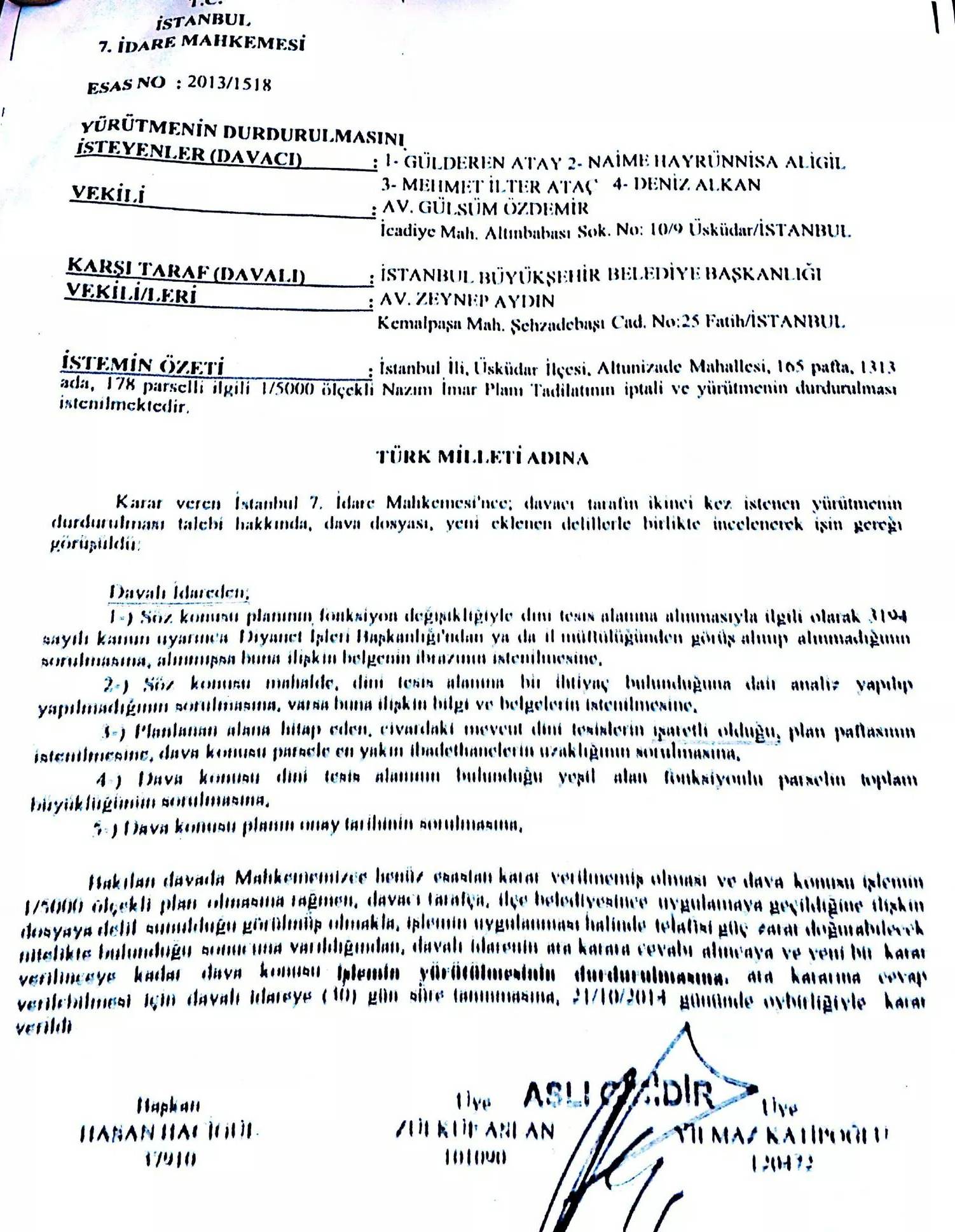 Ardından biri Çamlıca Konakları, biri Ata Konakları, üçü de bireysel olmak üzere beş tane dava açıldı.