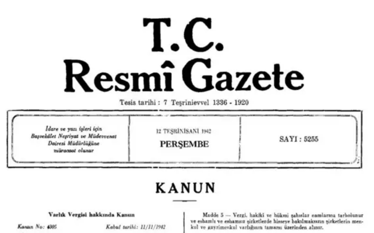 11 Kasım 1942, Varlık Vergisi Kanunu’nun Türkiye Büyük Millet Meclisi’nde (TBMM) kabul edildiği tarih olarak kayıtlara geçti.