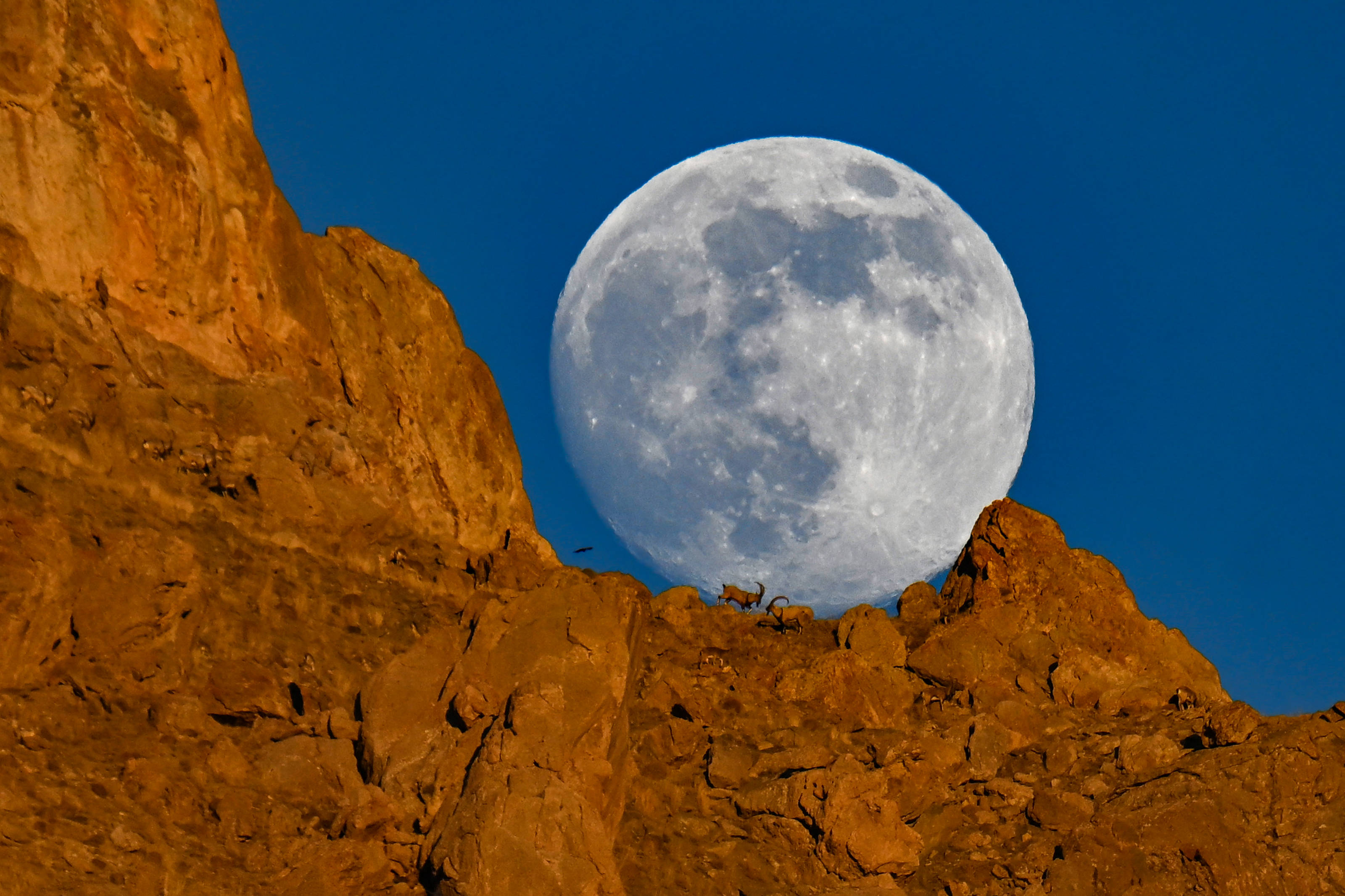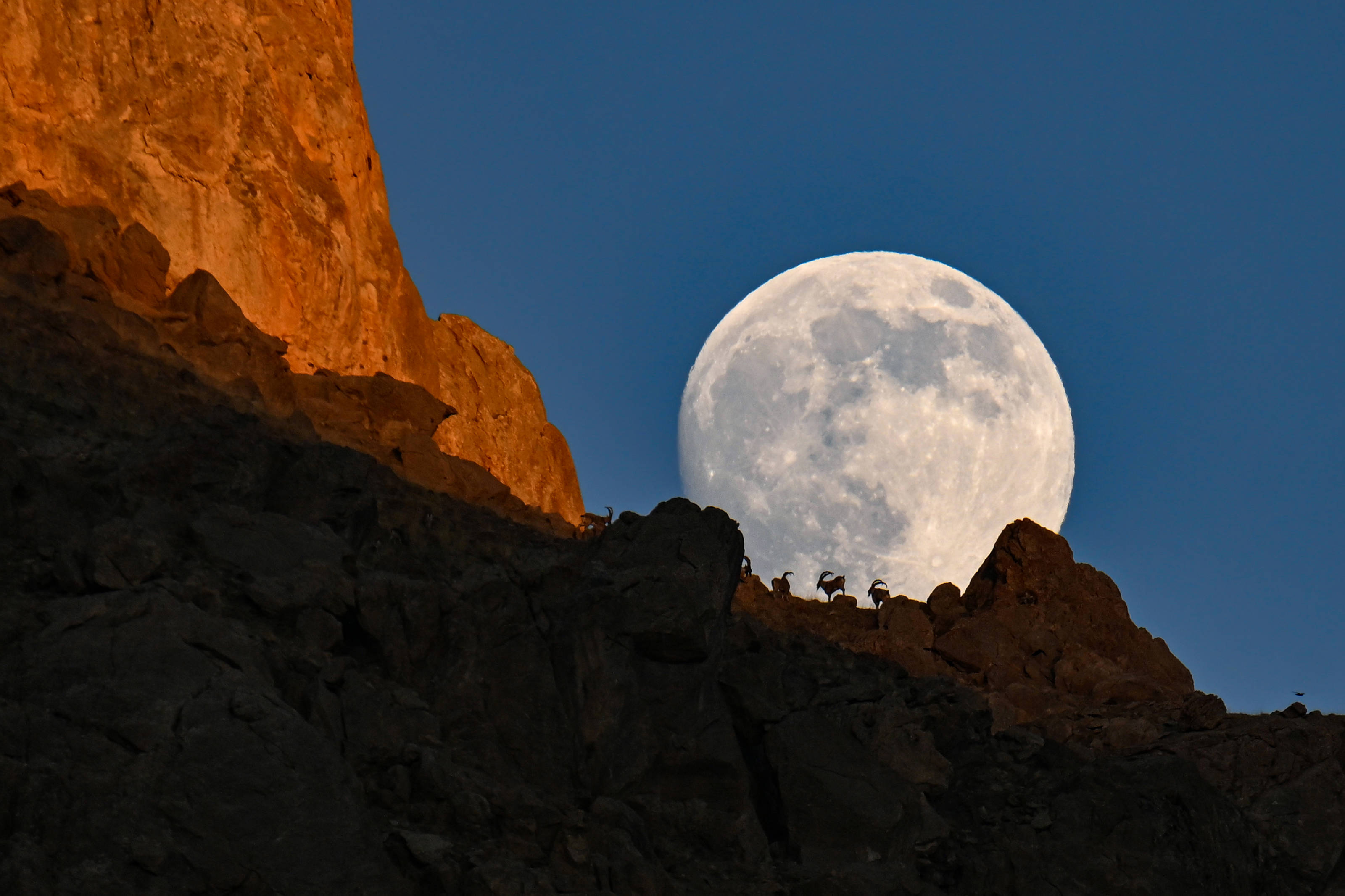 Dolunayla birlikte sürüler halinde görüntülediği yaban keçileri, karanlığın çökmesiyle gözden kayboldu.