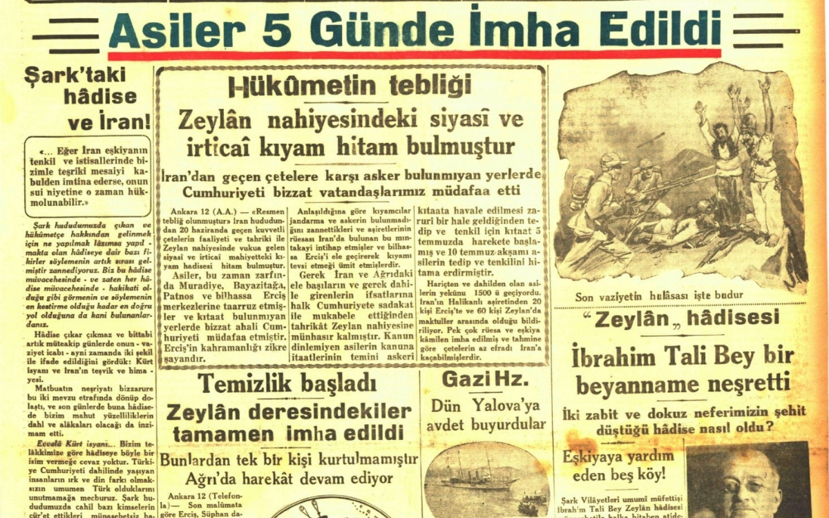 Cumhuriyet Gazetesi özel muhabiri Yusuf Mazhar, o dönem 15 bin insanın Zilan Deresi’nde öldürüldüğünü aktardı. 13 Temmuz 1930 tarihli Cumhuriyet Gazetesi’nin haberi şöyleydi: “Ağrı Dağı tepelerinde kovuklara sığınan bin 500 kişi kalmıştır. Tayyarelerimiz şakilere şiddetli bombardıman uyguluyor. Zilan harekâtında imha edilenlerin sayısı 15 bin kadardır. Zilan Deresi cesetlerle dolmuştur. Ağrı Dağı’nda yeni tenkil harekâtına başlanacaktır; bundan kurtulma imkânı yoktur.”