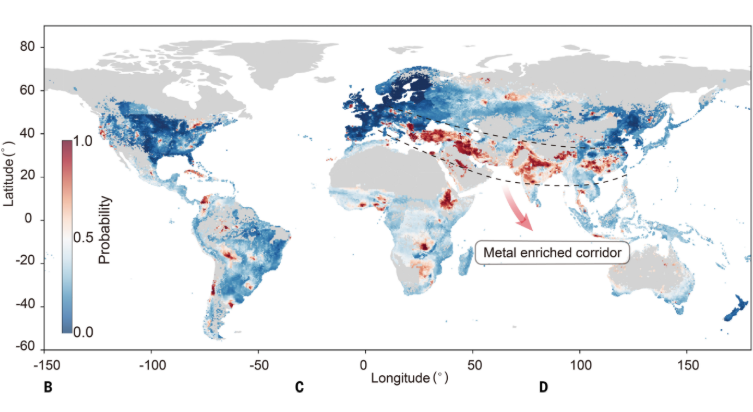 Çalışmanın dikkat çekici bulgularından biri, Güneydoğu Asya'dan Güneybatı Avrupa'ya uzanan ve "ağır metalce zenginleşmiş koridor" olarak adlandırılan bir bölgenin tespit edilmesi.