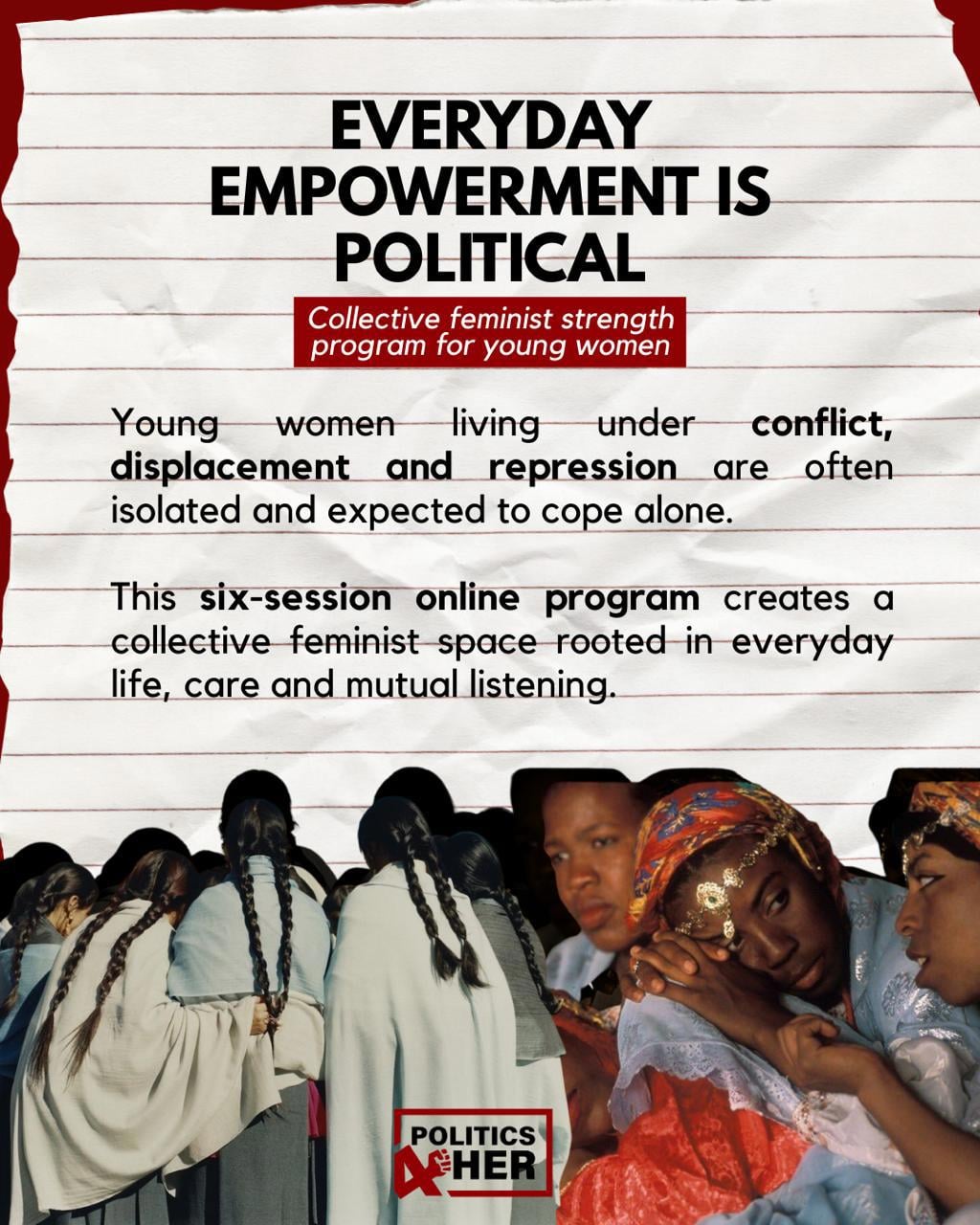 Sömürgecilik karşıtı/kesişimsel feminist çerçeveler ve bedensel pratikler aracılığıyla, güçlenmenin yollarını birlikte araştırıyoruz.