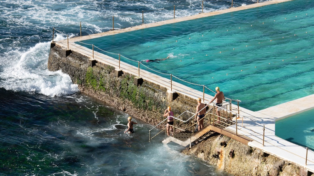 Avustralya’nın en meşhur turistik çekim alanlarından Bondi Iceberg Club binasının da kıyı mimarisine ne kadar yakıştığı tartışılır, fakat müessesenin okyanus suyuyla dolu havuzlarında bilhassa belirli bir yaşın üstündeki üyelerin kalabalık ve gayet disiplinli antrenmanları takdire şayan.