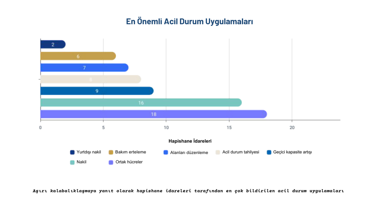Türkiye’de artan hapishane nüfusu nedeniyle benzer uygulamalar zorunluluk gibi görülse de bu yöntemler çözüme değil, sorunun derinleşmesine neden oluyor. Sosyal alanların koğuşa dönüşmesi, mahpusların adeta “depolanan” nesnelere indirgenmesine yol açıyor. Rapor, geçici önlemlerin kalıcı hale gelmesi riskine karşı uyarıyor. “Eşik Kayması” (Threshold Drift) olarak tanımlanan bu olgu, kriz anında kabul edilen istisnai durumların zamanla “yeni normal” haline gelmesini ve kabul edilebilir standartların düşmesini ifade ediyor.[13]