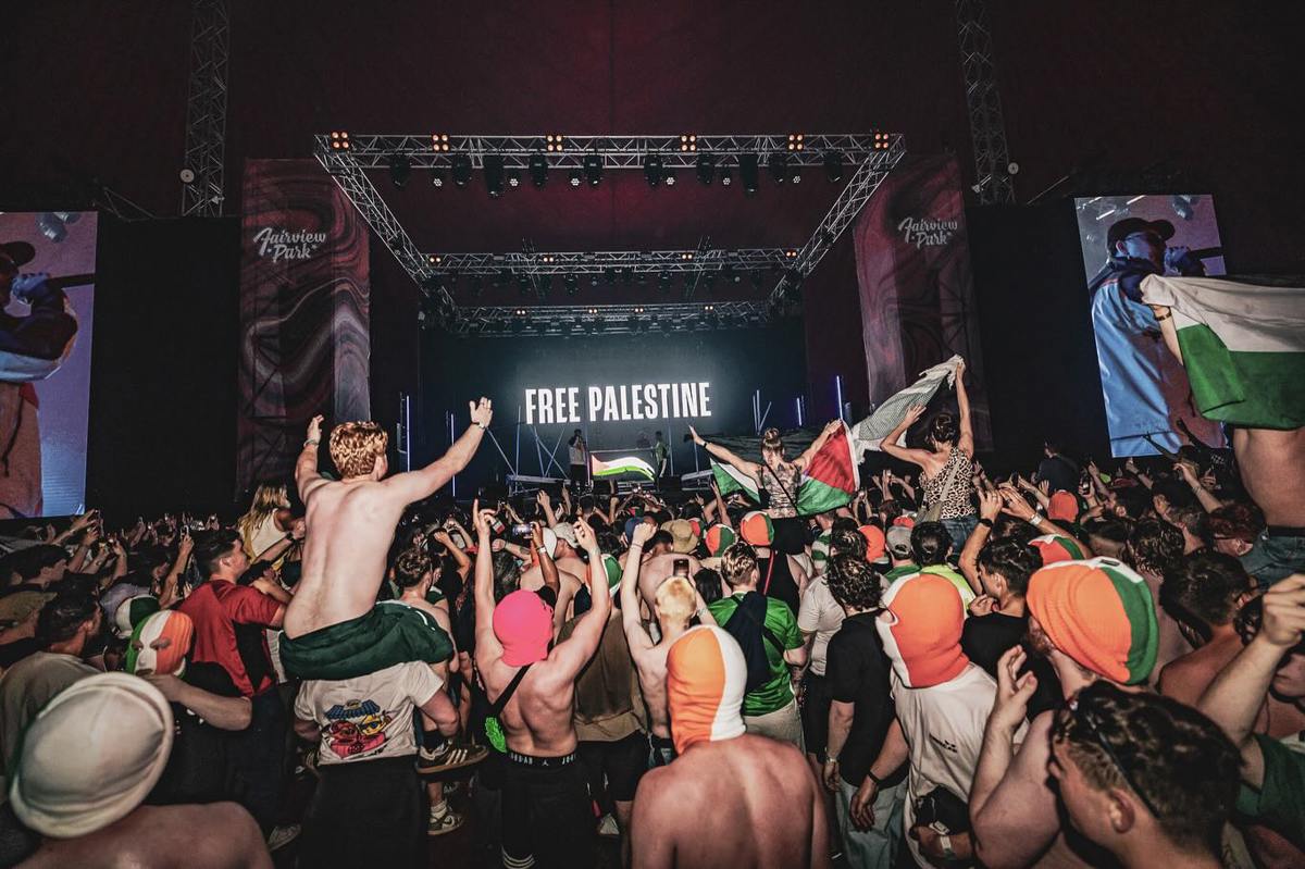 Kneecap’in politik söz dağarcığı yalnızca İrlanda ile sınırlı değil; grup, Filistin için de sesini yükseltmekten geri durmuyor.
