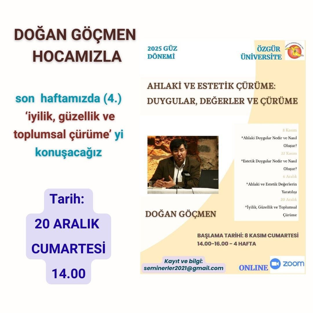 Çok duygusal bir giriş oldu, farkındayım. Ama yıllarca, sınırları devlet tarafından belirlenmiş eğitim-öğretim sisteminden geçtikten sonra karşılaştığınız bu vaha, böylesi bir güzellemeyi fazlasıyla hak ediyor. Sadece belirli bir alanda uzmanlaşma üzerine kurulu günümüz üniversite eğitiminin aksine, Özgür Üniversite’deki seminer konularının çeşitliliği ve zengin içerikleri sizi gerçekten çarpıyor. 2025 Güz ve 2026 Kış Dönemi seminerlerinin birkaçını, ne demek istediğimin anlaşılması için paylaşmak isterim.