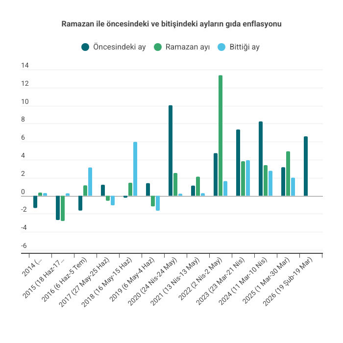 Aynı araştırmada analistler, Ramazan ayında gıda fiyatlarındaki artışın kalıcılık riski barındırdığına da dikkat çektiler. Araştırmada Ramazan ayına bağlı fiyat artışları dönem sonunda geri çekilmek yerine büyük oranda kalıcı hale geldiği ifade ediliyordu.