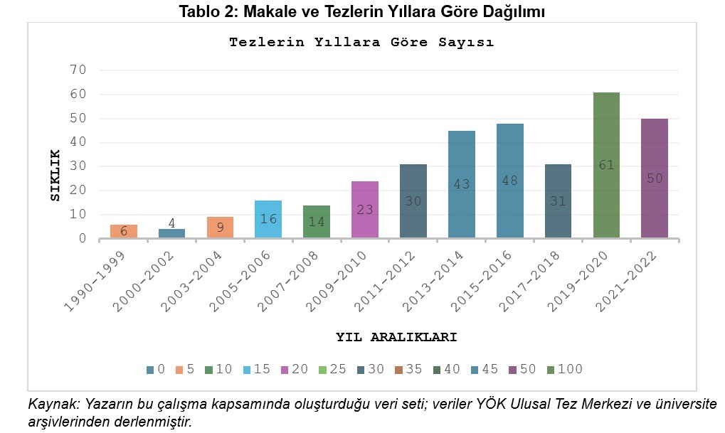 Veriler, 2010 sonrasında Süryaniler üzerine yapılan akademik üretimde keskin bir artışa işaret etmektedir. Bu artış, bilginin kendiliğinden çoğalmasından değil, dönemin politik söylemlerinin bilgi alanını yeniden biçimlendirmesinden kaynaklanır.